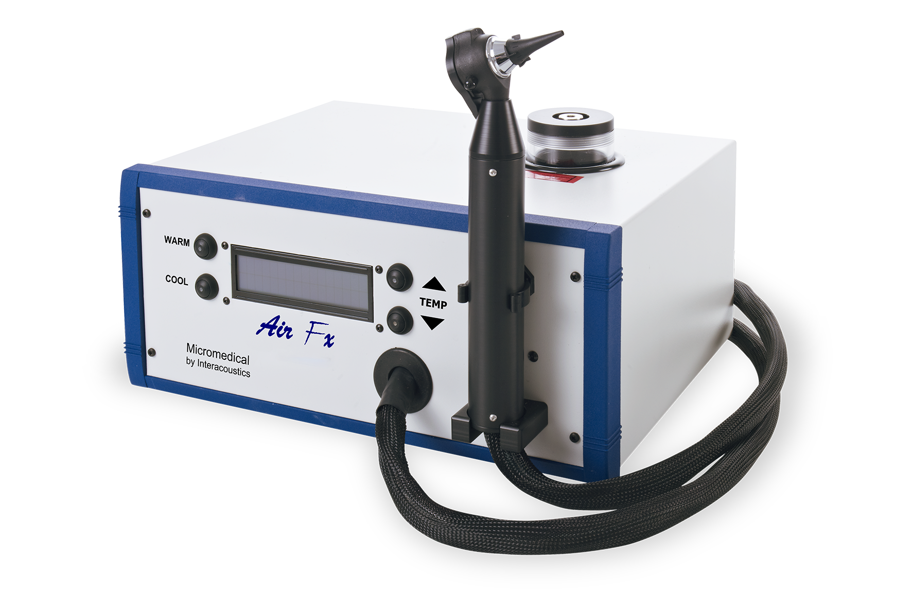 El irrigador calórico AirFx ofrece muchos beneficios. Ofrece un mango otoscópico con iluminación y ampliación. Además, se pueden iniciar las irrigaciones con el botón del mango o a través del software VisualEyes™515/525 o VN415/VO425.